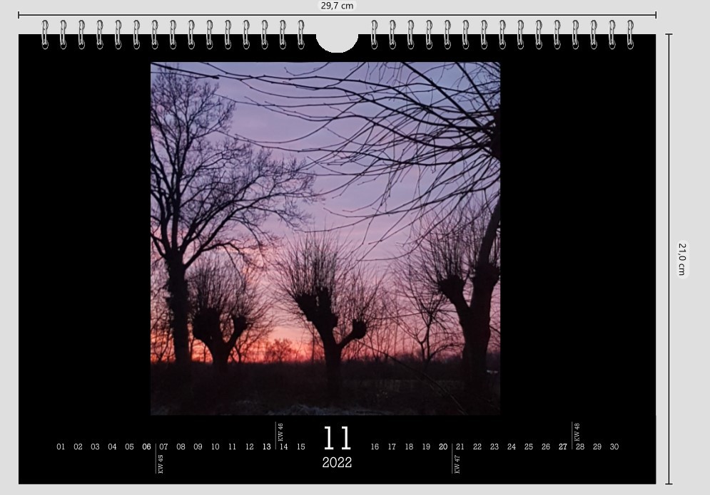 Hinweis: Der Kalender für das jeweils kommende Jahr kann immer ab Oktober vorbestellt werden. Er steht dann im November zum Verschenken oder Selberfreuen zur Verfügung.