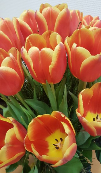 Innenseite: links Tulpenstrauß, rechts: Platz für Ihre persönlichen Zeilen